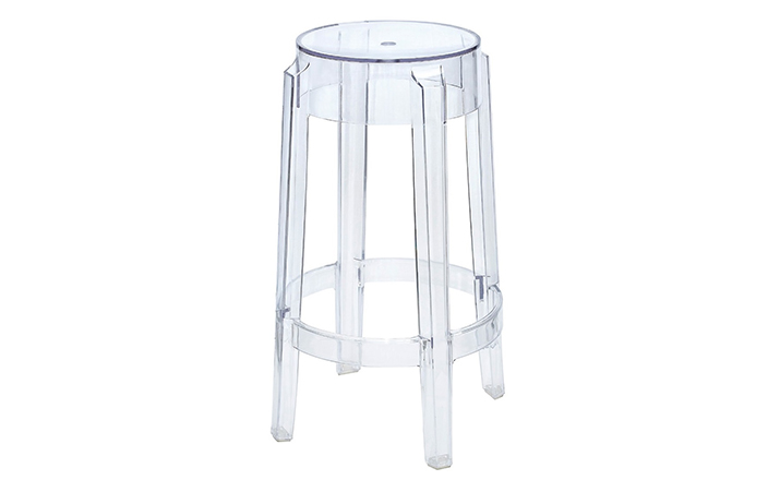 "Charles Ghost Stool(查尔斯鬼凳),由鼎鼎大名Philippe starck(菲利浦·史塔克)设计;进口高透明度工程塑料PC一体成型,简洁新潮,高净度透明材质很好的