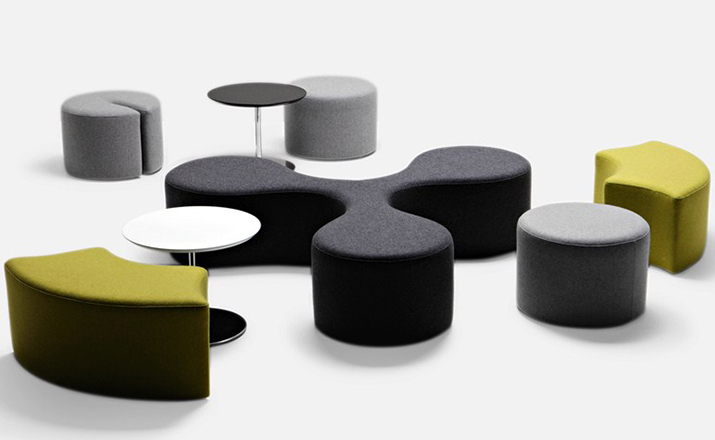Molecule Pouf(分子墩)为意大利知名设计师 Stefano Bigi 所设计的家具作品系列,此系列包括两款形状产品三叶形结构以及圆柱体结构,可搭配其他装饰的元素和小会议圆桌,您可根据喜好进行组合搭配。制作采用防霉实木内框架或玻璃钢内胆、不易变形、高密度海绵、进口布艺或皮革(颜色多选),需要提醒的是,其布艺或皮革外套是不可拆卸的。