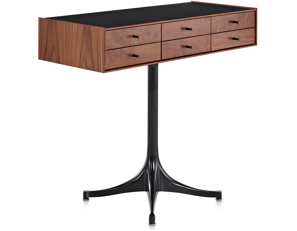 乔治·尼尔森(George Nelson)是美国极具影响力的建筑师、家具设计师和产品设计师,日本对George Nelson有着深远的影响。在他于1951年第一次到东京旅行,以及之后在那里的十几年,George Nelson迷上了日本的所有东西。这种影响最明显的的他于1952年设计的迷你箱。迷你箱的神奇处是可用来存放各种物品,是一个很多小抽屉小储物柜,方便您分类摆放各种生活物品。尼尔森设计的迷你箱最让人惊奇的是它几乎可以摆放在任何房间,无论是卧室,办公室,客厅等等任何您需要的地方,美观且不失和谐。每个抽屉都是木工们细心的安装设计,以保证高品质。抽屉采用胡桃或樱桃木皮贴面,基材为环保高密度板环保油漆喷涂、铸铝烤漆可调节脚架(4星级铝底座)、或玻璃钢一体成型脚架,抽屉贴心的配置有金属旋钮,方便打开与关上。