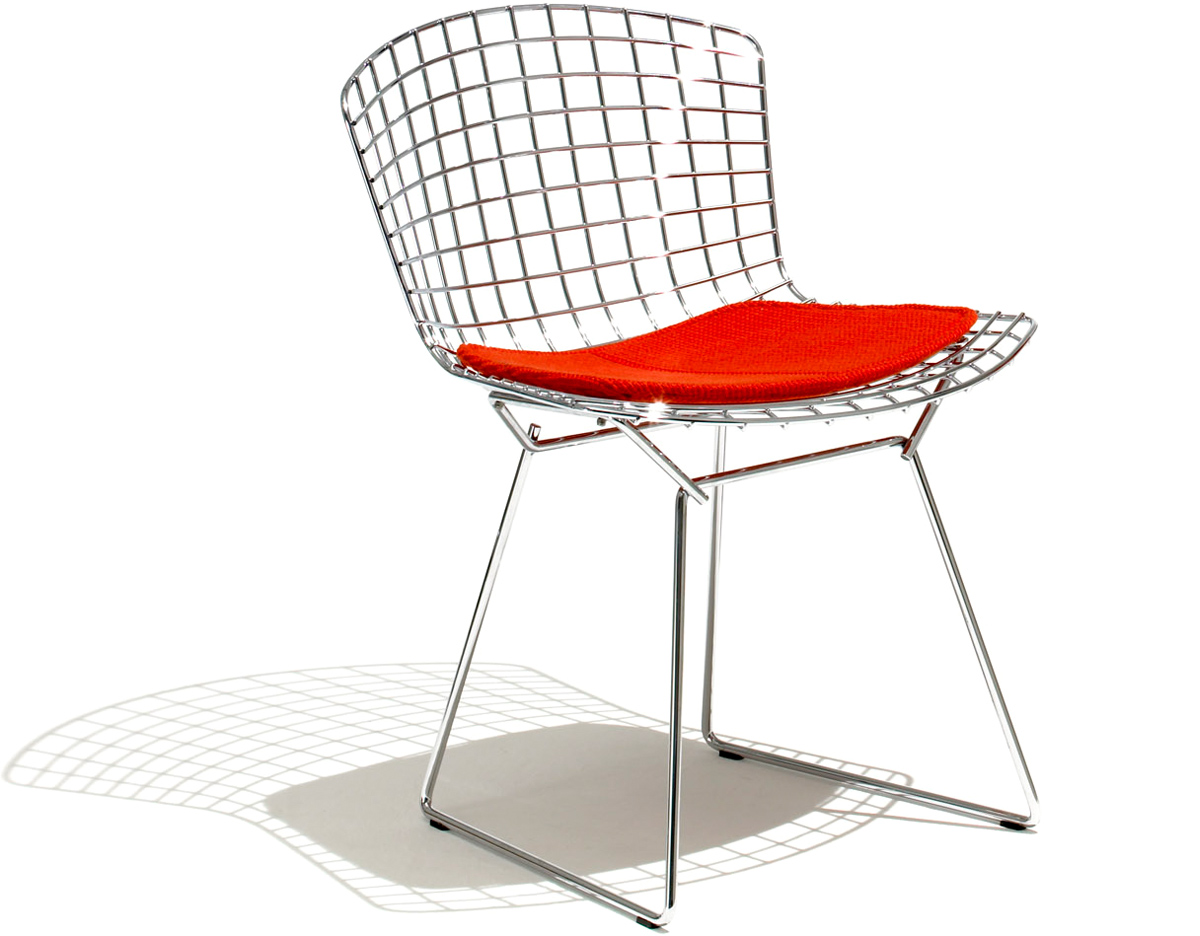 Bertoia Chair 是 Harry Bertoia 延伸其珠寶設計與金屬製作概念的一件兼顧實用與藝術的作品,精緻的外觀下,卻不失椅子功能上的舒適及耐用性