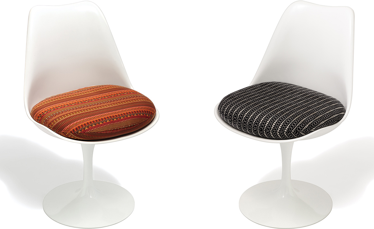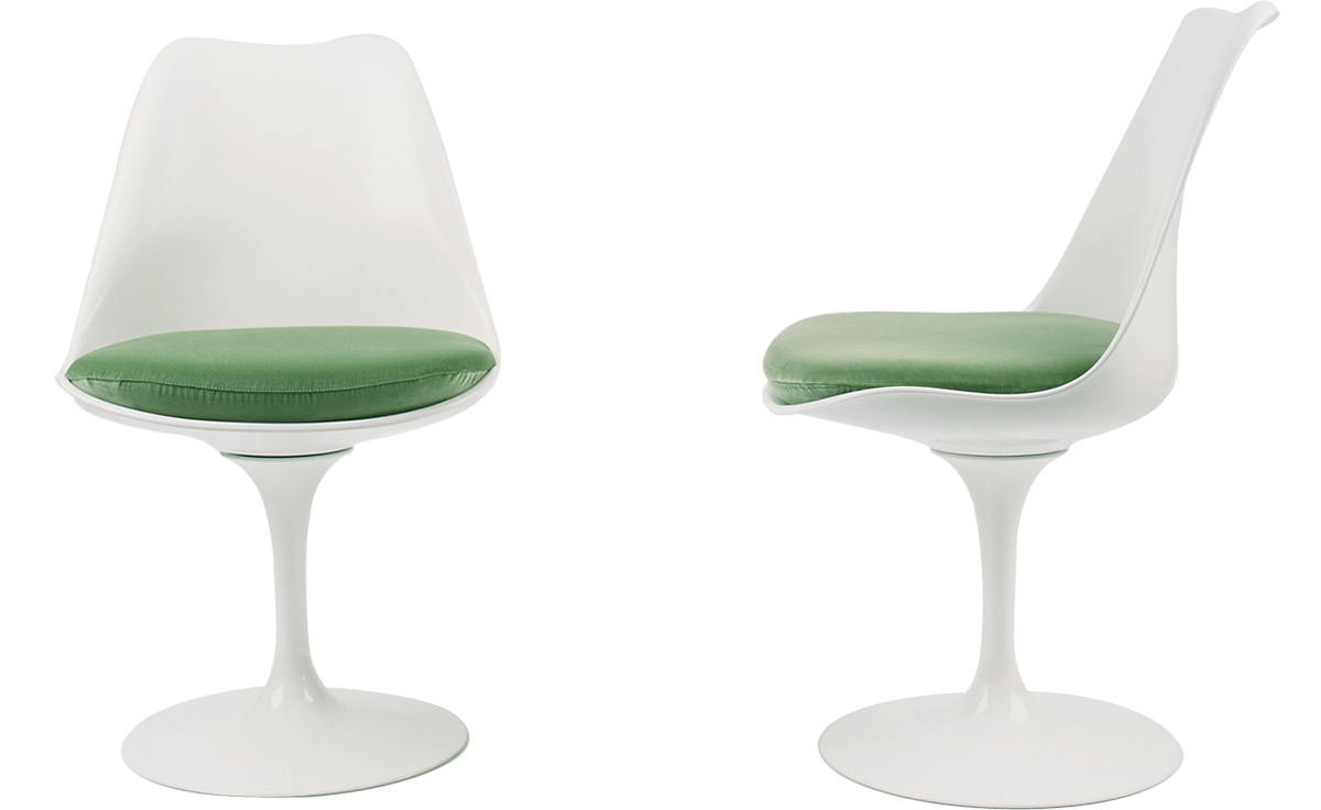 沙里宁郁金香扶手椅设有铸铝底座。外壳是用增强玻璃钢材料完成。座垫是可以可拆卸更换的,有拉链锁扣。