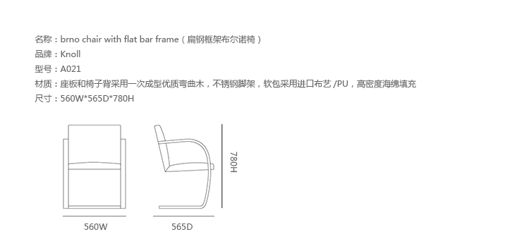 办公椅|现代真皮会议椅|办公家具|设计师家具|扁钢框架布尔诺椅