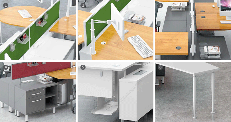 1、桌面屏风,多种选择:板材、玻璃、亚克力、吸音板、多功能挂槽; 2、电脑屏幕支架。