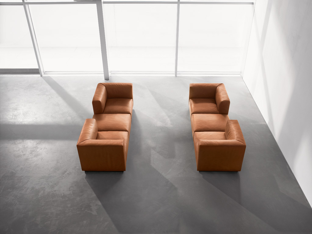 坚固的立方体,同时又很舒适。这款沙发系列将经典的造型、独特的舒适和首屈一指的工艺形成持久的价值观。柔软的内饰结合体积和伸长,用直线和曲线精确的拼接缝绘制轮廓。