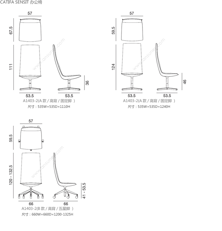 Catifa Sensit 办公椅 系列尺寸/示意图