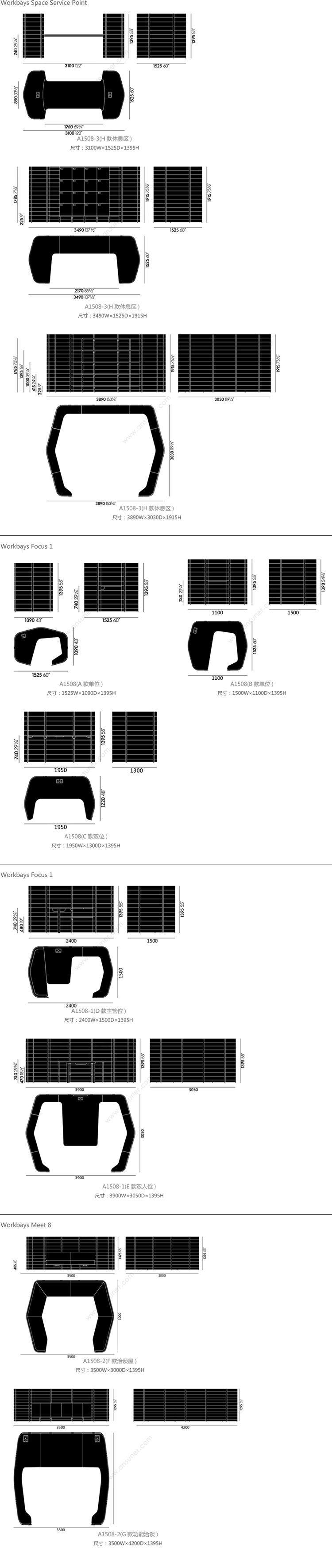 Workbays Space Service Point 系列尺寸/示意图