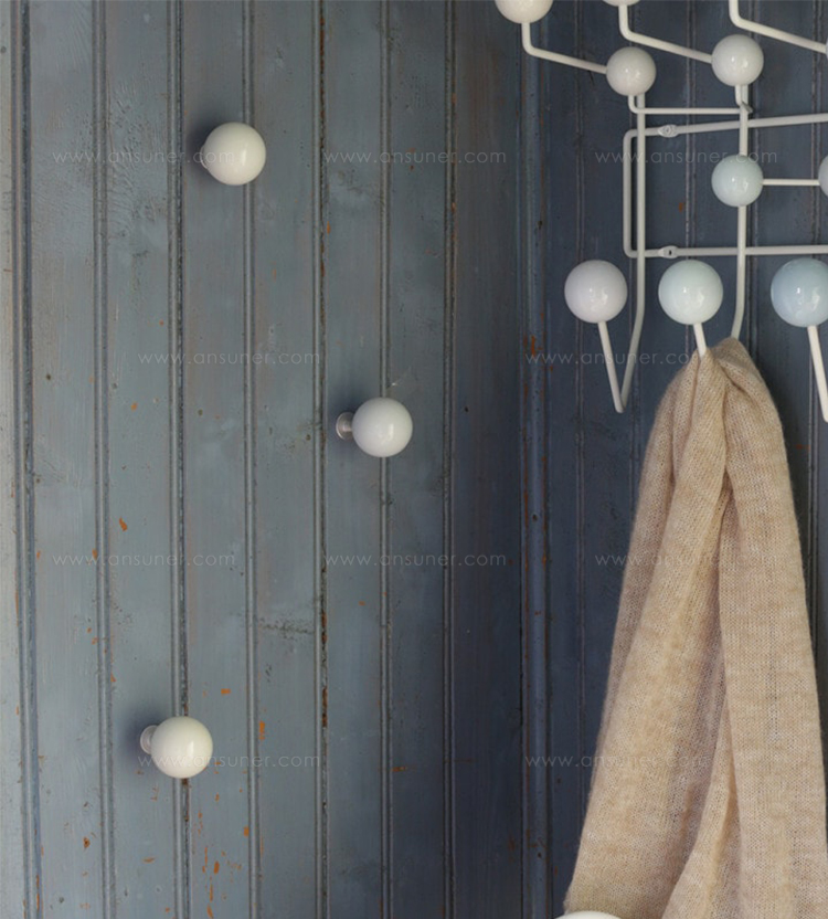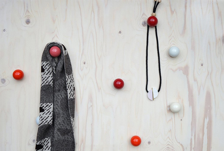 Hella Jongerius的Coat Dots安装在一个可伸缩的销钉上,可以稍微拉离墙壁,为夹克和衣架提供方便的挂钩。 同时,它们也可以简单地用作装饰墙元件。 涂层点有三种颜色协调的球,包括安装材料。