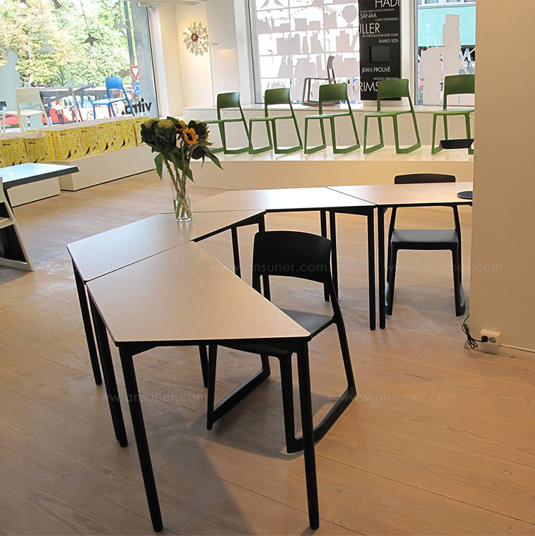 通过他们在建筑设计和培训和会议场地开发方面的经验,Edward Barber和Jay Osgerby开始意识到需要一种新的简单的桌面系统。 现代的,基于通信的表示和学习方法需要适应性的表格配置。 团队会议和研讨会通常在较小的表格集群中进行,而公开讨论适合于循环分组,而传统的演示要求面向演讲者的布局。 Map Table系统旨在满足这些不同的需求。 这些表格可以快速轻松地重新排列,并且可以根据需要进行堆叠。