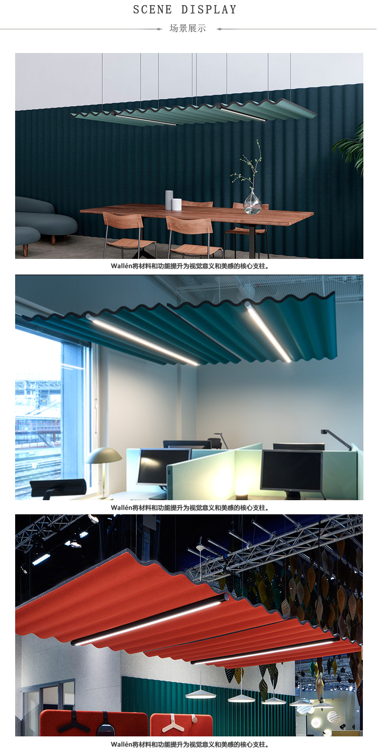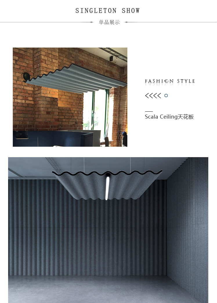 Scala是波纹铁上的俏皮释义,同时采用了形状的功能。“灵感来自冰岛的许多房屋,不仅屋顶,而且外墙也被瓦楞铁覆盖。它诞生了将它带入空间的想法,“屡获殊荣的设计师Anya Sebton解释道。吸音Scala的设计不仅是出于视觉原因而开发的,而且主要是为了营造更柔和的音景。