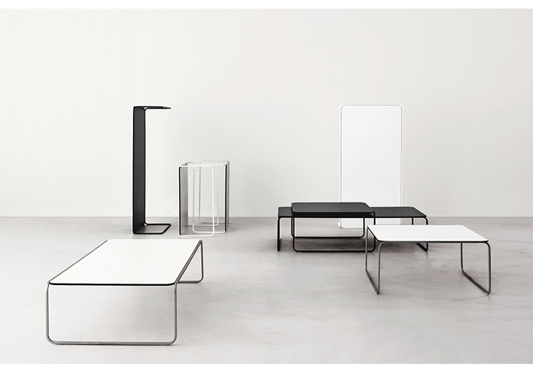 金属管状框架,作为一条丝带,定义和发展了圆型结构的小桌子。因此,金属管状结构,就像丝带一样轻,定义和发展了圆桌的圆形框架。它有两种高度,形状和颜色可以重叠。足以创造一个对话。