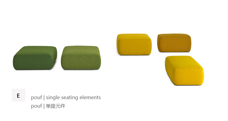 他们彼此寻找并吸引对方。这种形状和颜色的组合产生了的沙发,是一个模块化元素的系统,增强了所有社区空间的特征。外形柔软,阀座宽敞明亮,足以容纳躺在地上的身体。可以解决许多方案,这要归功于一个非常简单的链接系统,它可以重新排列形状并重新定义配置文件。一个在家里、办公室或任何空间聚会的小而重要的世界。当你想给自己一点时间的时候,屏幕面板,可以用作靠背,创建一个非常谨慎的区域。