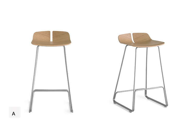 一个很小的间隙,一条线的中断,和连接的凳子形状。它是轻的,就像它狭窄的金属底座和木质座椅所暗示的那样,轻轻弯曲形成靠背。在自然的木材版本,纹理加强了柔软的轮廓和拥抱像一个非常新鲜的叶子,突出其结构的轻盈性。
