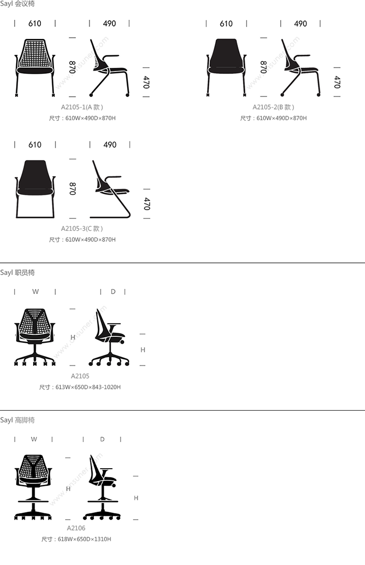 Sayl 会议椅 系列尺寸/示意图