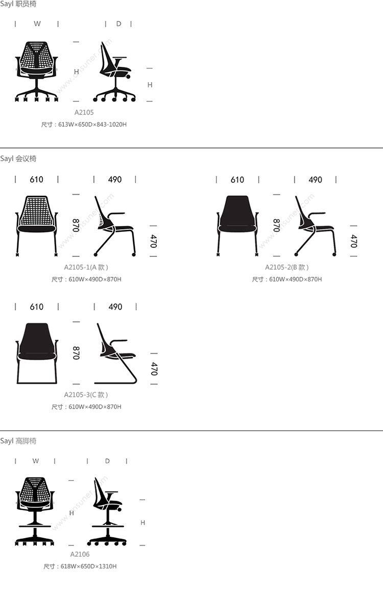 Sayl 职员椅 系列尺寸/示意图