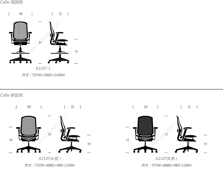 Celle 高脚椅 系列尺寸/示意图