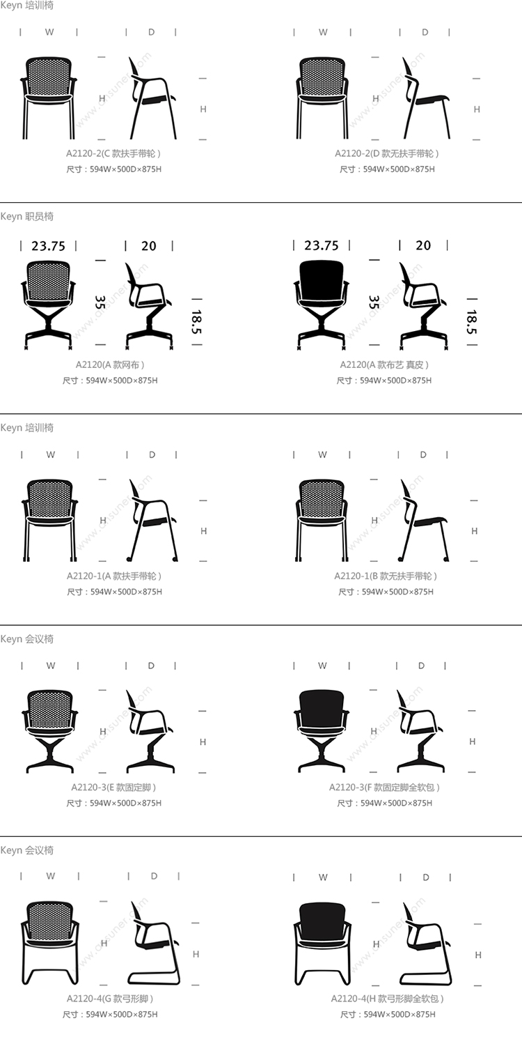 Keyn 培训椅 系列尺寸/示意图