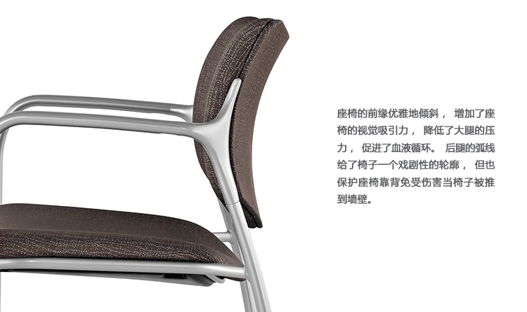 Aside是一把工作椅品质的扶手椅,它给人提供了一个舒适的坐落环境,不管几秒钟还是几个小时它都满给你提供舒适的感觉。它有着厚实的坐垫和健康的轮廓,是一个独一无二的支撑结构。对于不同的空间和不同的需求,脚部可以选择滑轮或者无滑轮结构。