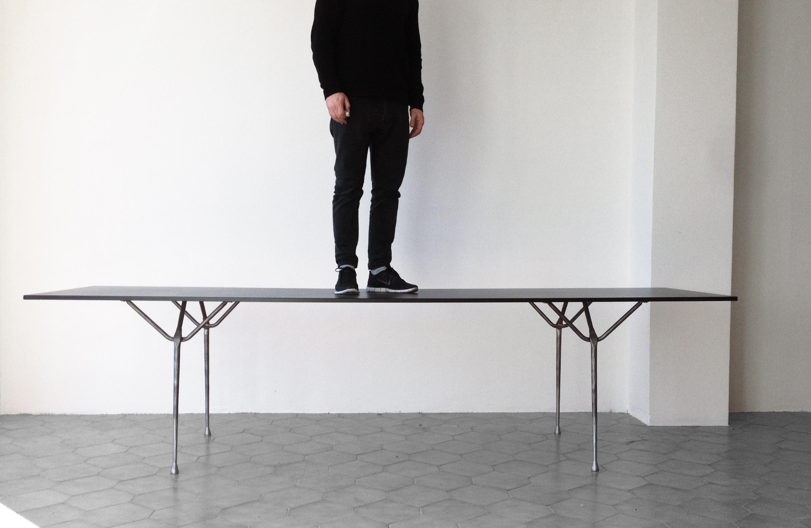 罗南补充说:“这个项目的微妙之处在于,它使用了这些暴力、强烈的手势,同时,材料的最小使用和它们的巧妙手法使它变得微妙。”几何形状的基座具有系统性,可以承受不同高度的压力,可以承受不同大小、不同形状和不同材质的顶部。