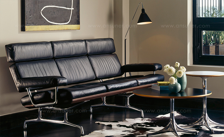 Eames沙发注重使用漂亮的材料和简约外形,完美诠释现代家具设计。倾斜轮廓和简洁表面体现出华丽核桃木或柚木、柔软皮革和抛光铝的和谐组合。现代家庭或办公室皆宜,是舒适地仰坐和放松的奢华选择。