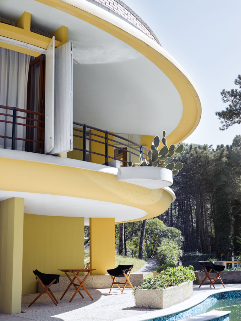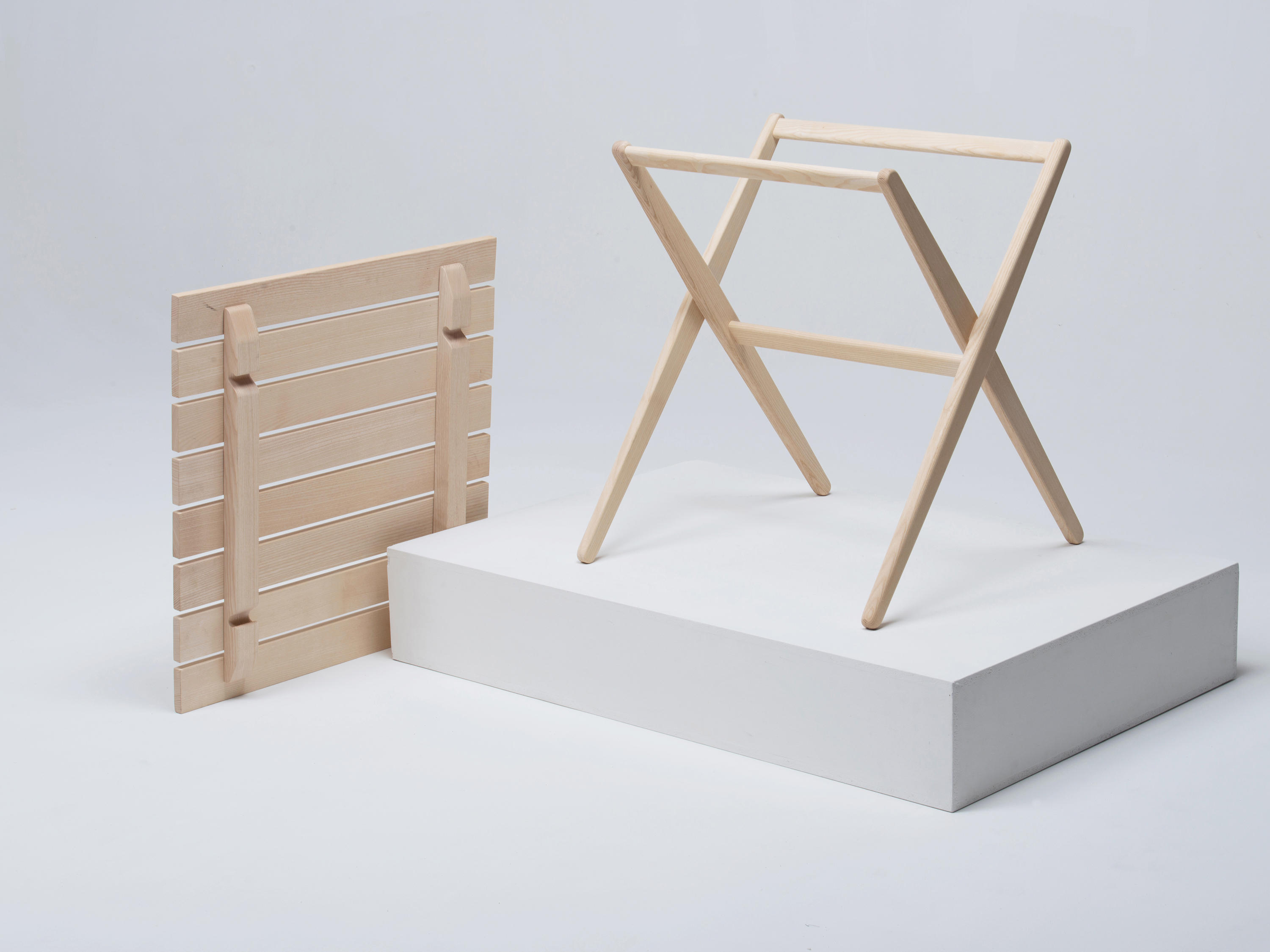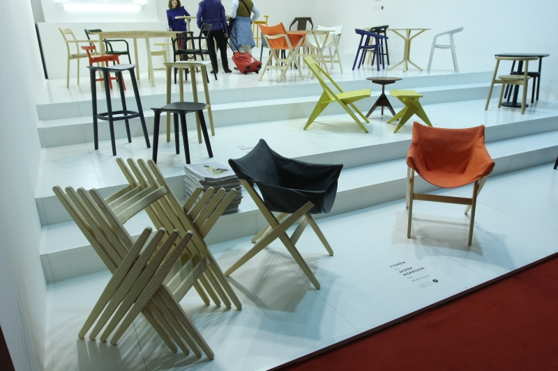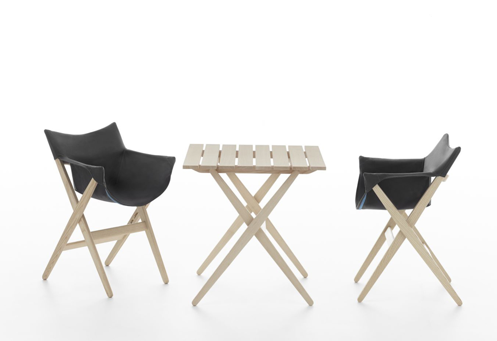 Fionda系列家具的特点是一个固体灰折叠框架与座椅制成