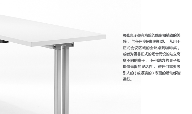 每张桌子都有精致的线条和精致的美感,与任何空间相辅相成。从用于正式会议区域的会议桌到咖啡桌,或者为更非正式的场合而设的站立高度不同的桌子,任何地方的桌子都提供无限的灵活性,使任何需要吸引人的(或紧凑的)表面的活动都能进行。
