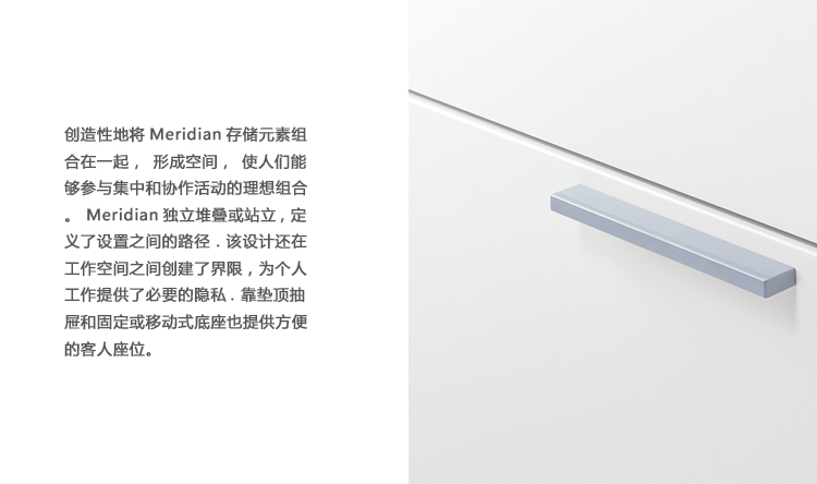 Meridian的优势在于其随着组织需求的变化而发展的能力。 它的模块化元素堆叠起来,从任何一侧打开,并且可以轻松互换,以创建个人和团体支持的空间,无论是现在还是将来。