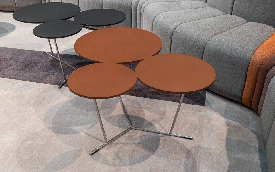气泡的俏皮形状打破了严格和方形的环境。具有三种不同大小的程式化气泡的装饰性图形桌子。如果您只想要更多,可以对其进行调整。它们会渗入房间。哑光烤漆桌面采用激光切割铝制成,并由不锈钢结构支撑。有多种颜色可供选择,从黑白到沙子,赤陶,无烟煤和粘土。可在室内和室外使用。