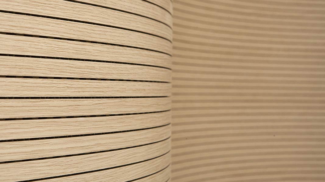 4akustik。 用于墙壁和天花板的吸音系统,包括三聚氰胺面,上光或贴面的MDF板条。 通过对亥姆霍兹共鸣器理论的研究以及使用多孔纹理的声音消散,可以实现较高的性能水平。 4akustik结合了出色的吸音性能和最高的健康与安全标准。 该面板在其EC认证版本中,由于其对火的反应而被分类为“ B-s2,d0”,并且由于其极低的甲醛含量,还符合高度严格的日本“ F4星”标准,符合 JIS参数。 同样的产品也可提供未经燃烧反应认证且甲醛排放量为E1级的版本。