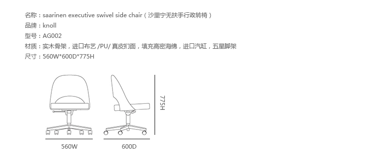 办公椅|布面职员椅|办公家具|设计师家具|沙里宁无扶手行政转椅