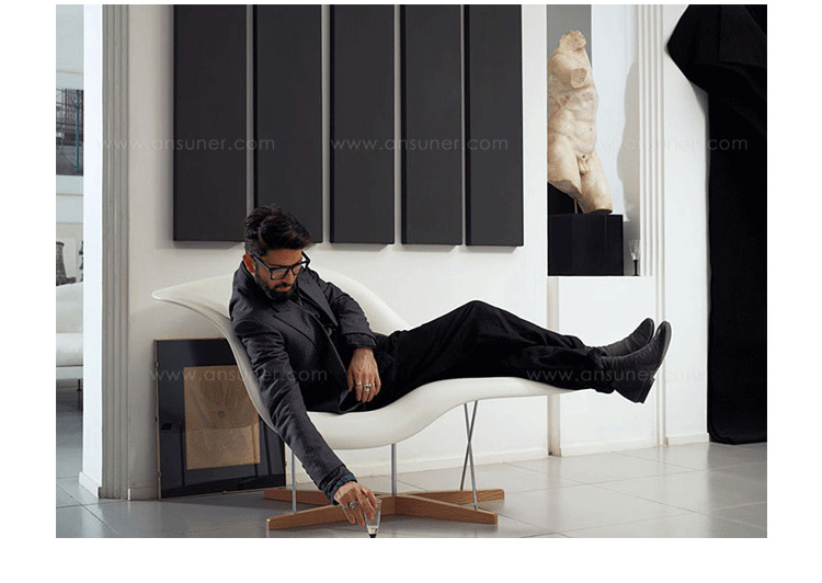 Charles & Ray Eames 以 “流動的線" 為概念設計出了 La Chaise。靈感來自法國雕刻家 Gaston Lachaise 的雕塑品 Floating Figure(漂浮人像),Charles & Ray Eames 為斜臥的仕女找到了一個得以簡單休憩的處所。La Chaise 無可挑剔的優雅,或坐或臥讓使用者可以盡情伸展,創造了一個充滿想像和對話性的空間。