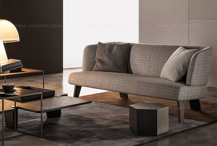 Creed “Lounge”沙发后方的地面支撑采用做工考究的弯曲金属架并搭配浅铜色亮光漆,前方支撑腿则为米灰色的鲍迪豆实木材质。支撑腿的上下方均采用精致的金属部件并搭配浅铜色亮面漆,用与众不同的细节设计来展现非同寻常的高超工艺。