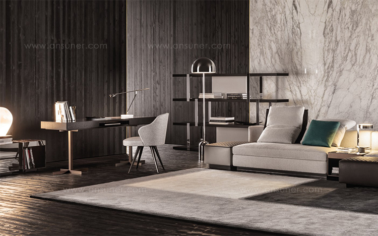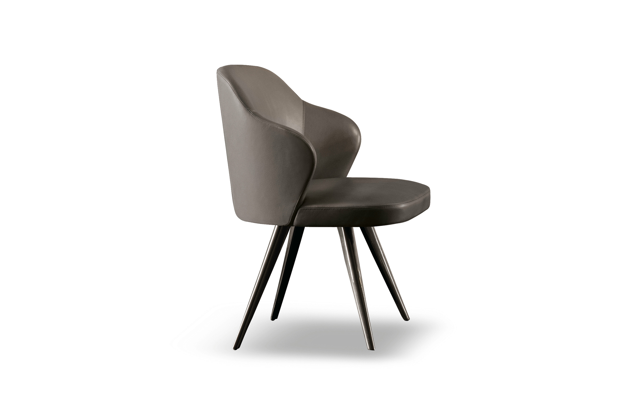 莱斯利“餐厅”小扶手椅展现出圆润而又迷人的造型和同名扶手椅的平衡比例。其特点在于冷模注塑而成的弧形靠背,搭配柔软的填充物。一丝不苟的覆面工艺打造完美的外观效果。Leslie “Dining”可以完全采用织布覆面或者皮革覆面,也可以选择混搭,靠背为织布覆面,坐垫则包覆皮革,体现两种材料之间的完美对比效果。Leslie “Dining” 小扶手椅有三种样式:Pewter色漆面的钢制固定基座,或是Pewter色漆面的压铸铝支撑腿。旋转式基座也采用Pewter色漆面的压铸铝支撑腿。