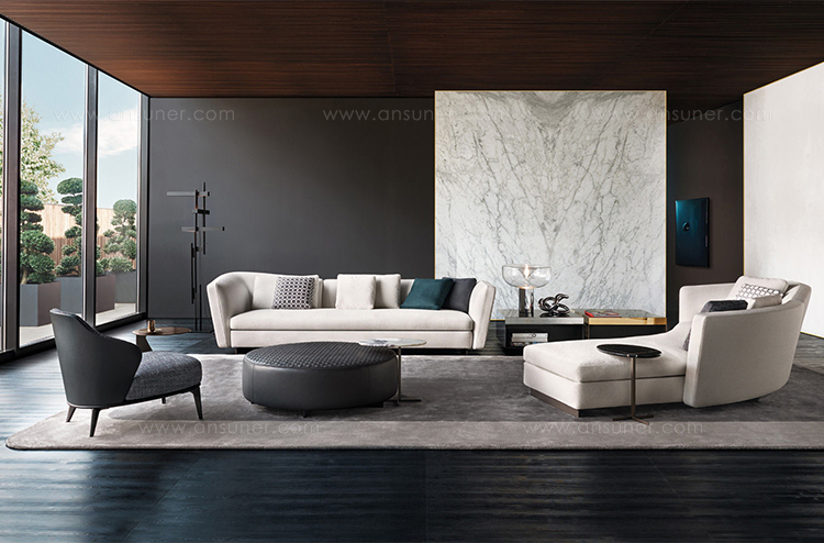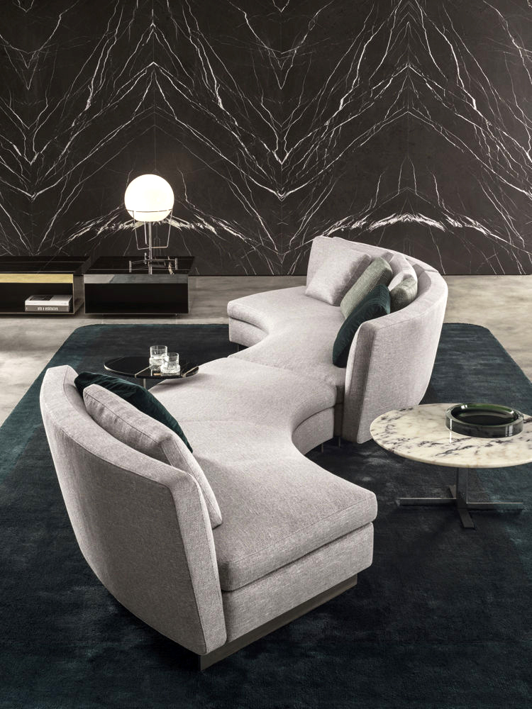 这组边几系列简洁洗练,材质的选择展现出精致的典雅。如果说Catlin边几的设计崇尚简洁,那么材质的选择则旨在打造非凡的视觉和触觉效果。金属基座有着精致的十字形地面支撑腿,其中包括颇有趣味的组合:黑色压花搭配铬色或金色的抛光表面,打造出多种多样的风格。材料的搭配体现出非凡的优雅感,台面可以选择烟灰色的玻璃材质,或是选择两种珍稀名贵的大理石,Arabescato Purple或Sahara Noir,两者都拥有抛光表面。Catlin系列有圆形和椭圆形两种造型,有不同的尺寸可供选择,正如边柜和餐桌一样有多种类型。
