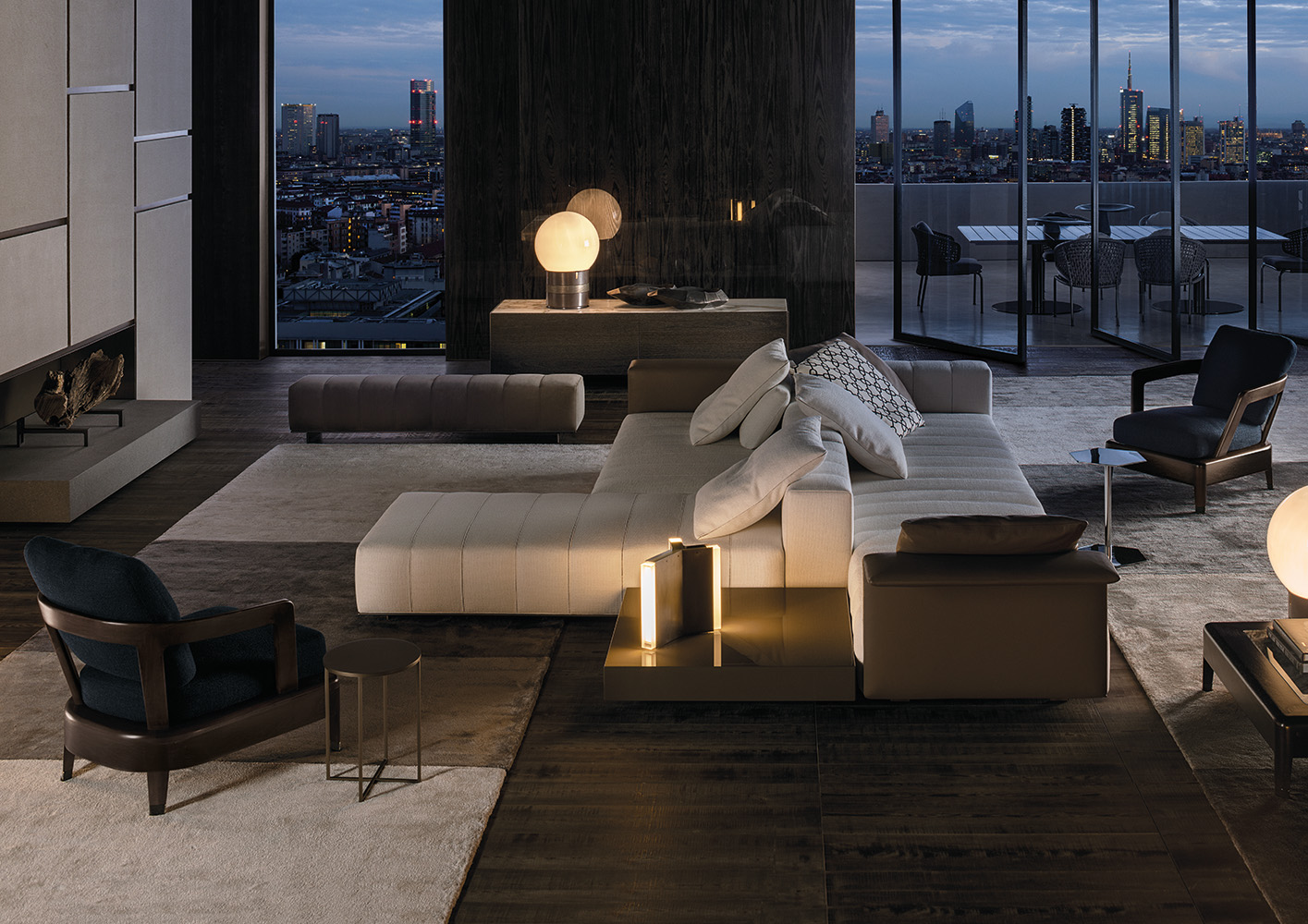 这一系列专为打造居住空间的实用元素而设计,布里斯莱边几具有独特的个性。基座和桌面是完全对称的六边形,这也是2016系列的主旋律之一,镀铬金属材质则突出其利落的个性。布里斯莱推出两个版本:一款是基座和桌面对应的六个角分别用细杆连接,另一款是由中心位置的镀铬金属杆连接基座和桌面。布里斯莱是一款多用途的边几,可以随心所欲地搭配Minotti产品系列中的所有沙发和扶手椅。