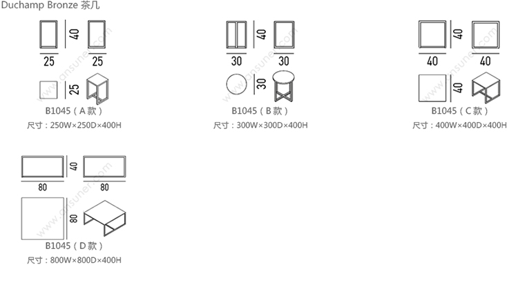 Duchamp Bronze 茶几 系列尺寸/示意图