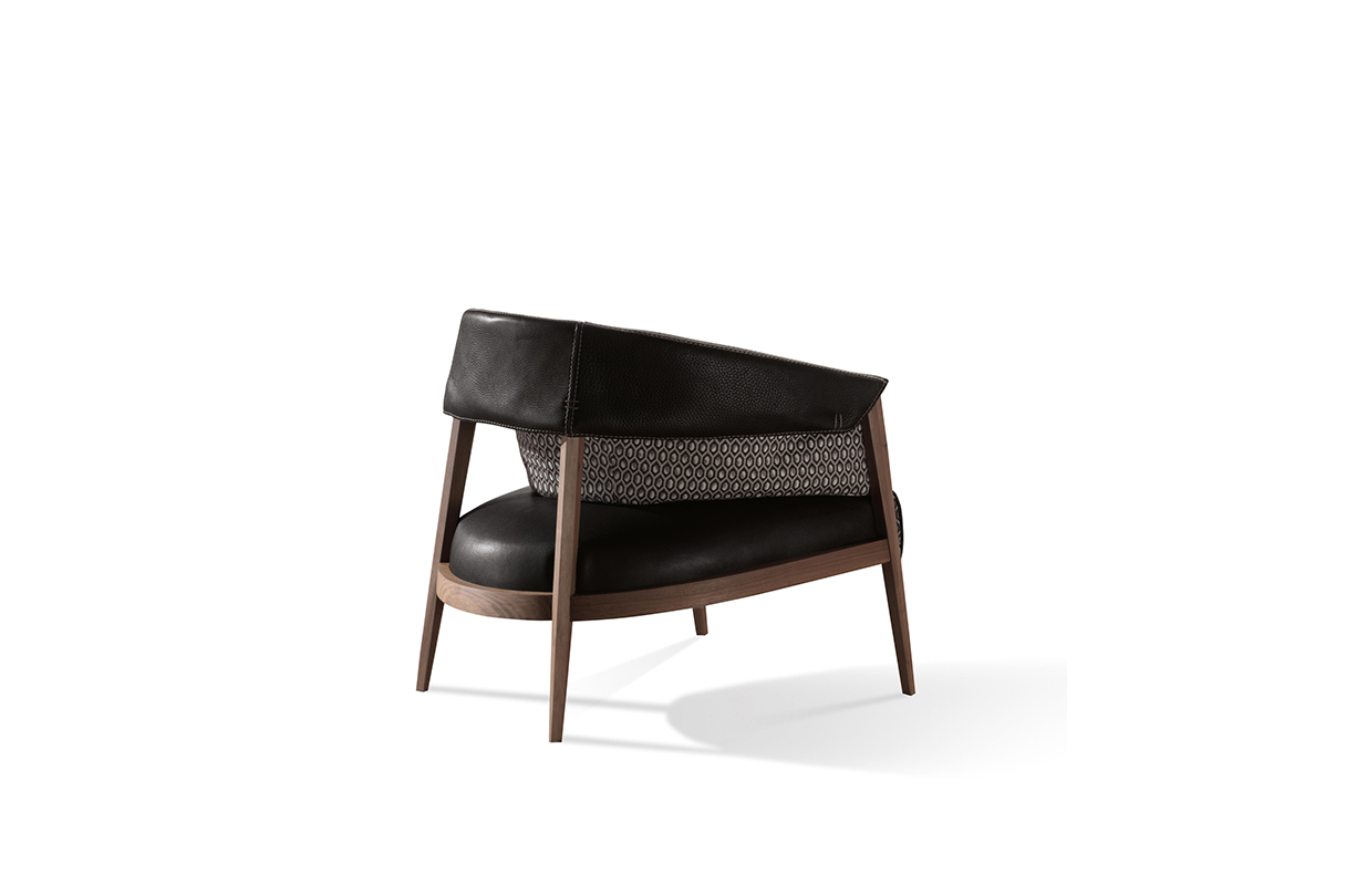 截锥形状特征的这把椅子是由特殊的耦合增强衬里的皮革和织物对比颜色深浅,模式和裁剪,座位和包裹起来的上层框架。 后者是几乎完全暴露,从而成为一个中心的整体组成、封面,还可以推出它完全删除了.