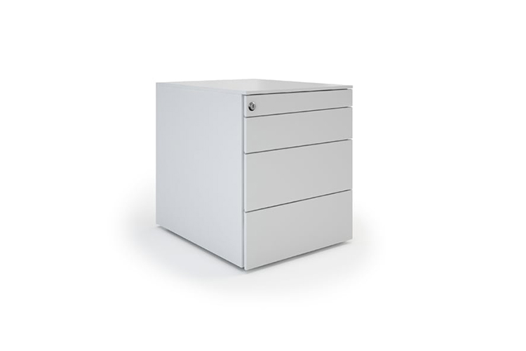 带脚轮,两个抽屉和一个填充柜的存储单元。由于其极简主义的设计,它特别适用于个人工作空间。