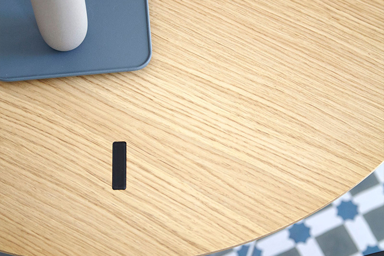 桌面采用漆面MDF或橡木贴面,由Viccarbe提供的饰面和带透明尖端的漆钢腿。