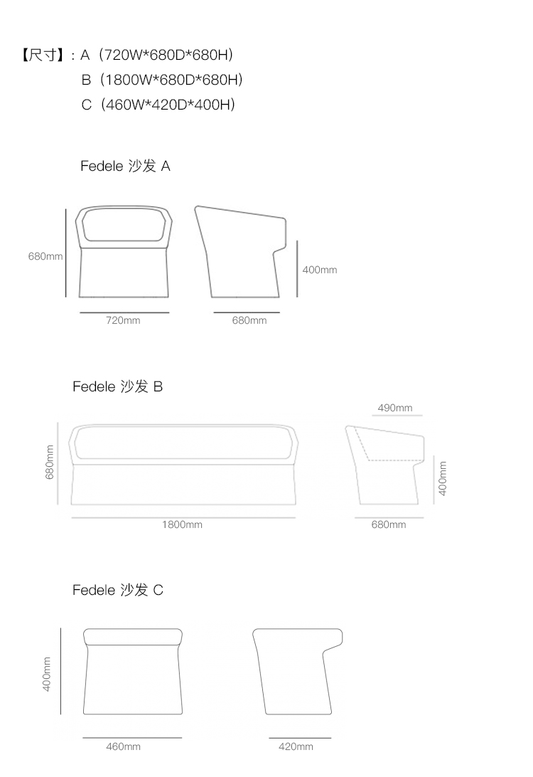 Fedele 沙发 系列尺寸/示意图