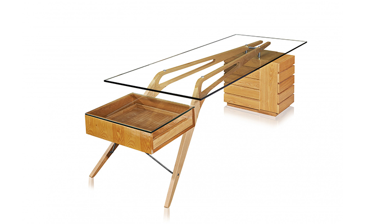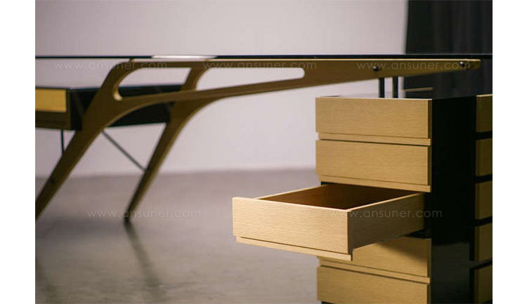 自 1949 年诞生以来,Cavour Desk(加富尔桌)的优雅和性感设计仍然是非常独特和令人印象深刻。水曲柳实木台架、优质五金配件、钢化玻璃或实木台面,这些都令人非常着迷。意大利设计师Carlo Mollino。他或许可算是20世纪内最重要的意大利设计师之一,他对于工业、室内、机械、建筑等设计的浓厚兴趣让其涉略多广,而不追求风潮的设计主张也让作品更加历久弥新。虽然在当时,整个大环境似乎并未给予他太多的掌声,但作品的深度与创意在今日来看却是不证自明。