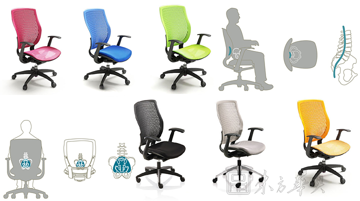 ※ 高弹力材质的塑胶背板,附有人体工学的腰靠设计,可随人体的活动巧妙变形,并同时提供均衡的身体支撑,保持嵴椎的曲线。尤其对下腰部位的支撑,更健康的解决了久坐的疲劳和不适。