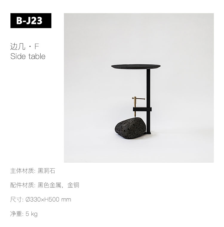 洞黑系列,洞悉秘密,来自地心的喷发。极想把洞石的芳华寂寞倾述出来,呈现于日常并使用它。尝试将洞石塑造各种形态,原材,呈浅灰色;亚光,颜色渐渐加黑;抛光,纯黑了。三种状态,魅力各异。深入践行,洞石的特性愈显,吸音、防水、防火、保温、隔热,耐酸碱、耐腐蚀、耐沾污、耐霉变,且无污染,无放射性。惊喜不断,质量很轻的洞石,居然强度很高,轻、硬,可塑性强,气孔式的通透,赋予了极简中的奢华。触目的拙,爱不释手。