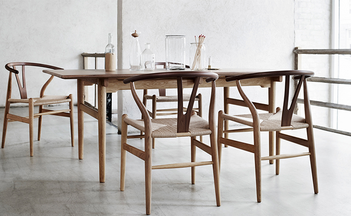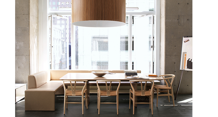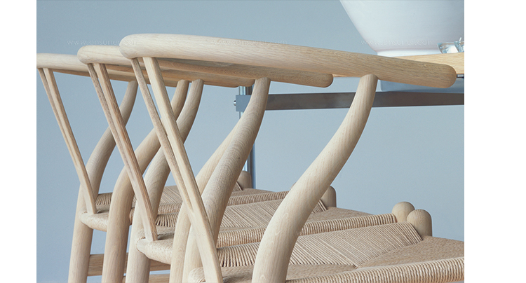 Y椅子是Hans J.Wegner最著名的作品。 它具有重量轻、有吸引力、舒适、中式风格等特点。 该款设计灵感来源于中国传统家具,四平八稳,古色古香,大气自然。上圆下方,浑然天成,深受中国顾客喜欢。Y椅关键在于是工艺与简约的设计,有着清晰的线条。 尽管椅子简约的外观要超过100个步骤进行。除其他事项外,手工编织座垫超过120米的线。 材料有丹麦硬木(橡木,榉木,水曲柳)以及北美硬木(胡桃木,樱桃木)等。外表可漆成各种各样的颜色。 垫子的座位可以添加额外的舒适。