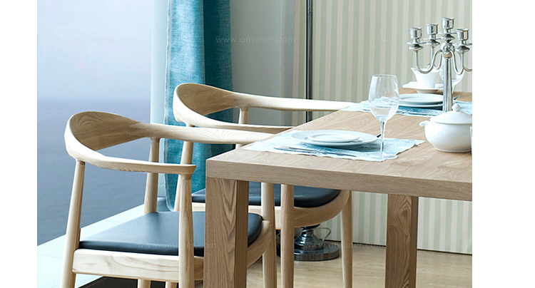 汉斯·韦格纳是把中国家具风在西方世界传播中最鲜明的代表。根据明式家具造型大方,比例适度 ,精于选料配料,重视木材本身的自然纹理和色泽等优点再糅合西方简约,人文元素设计的家具既古朴大气又舒适美观。“肯尼迪椅”是他创造的一系列中国椅中最具特色的椅子。