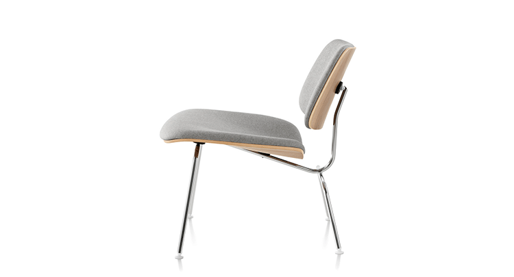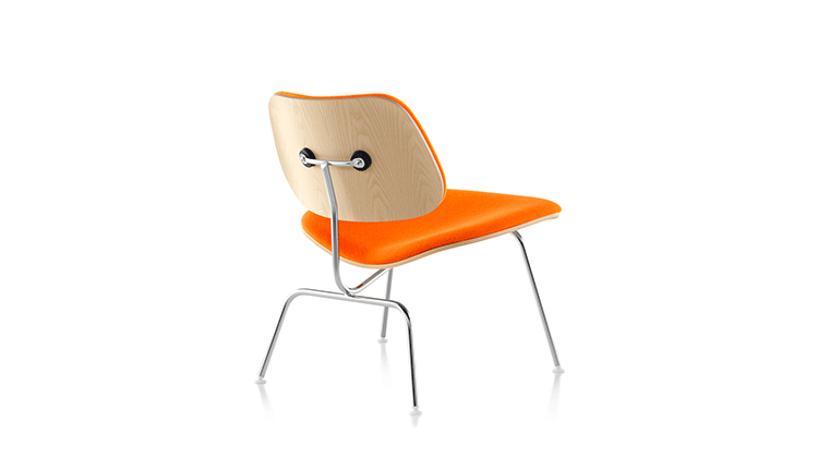 A refreshing variant of the LCM (1946), the Upholstered LCM sports Kvadrat Divina fabric on its front side. This iconic chair began as an experiment in the Eameses'apartment,where they were molding plywood in what they called the“Kazam! Machine.”The machine pressed thin sheets of wood veneer against a heated membrane that was inflated by a bicycle pump. Humble beginnings for what would become one of the world's most widely recognized and highly coveted chairs.Low-slung,with an expertly crafted molded seat and back(no bike pumps are used today),this chair cradles you in a comfortable position.Its form relates directly to the human body and holds no secrets as to how it succeeds technically.The slender rod base provides superior strength,while rubber shock mounts buffer against jarring movement.