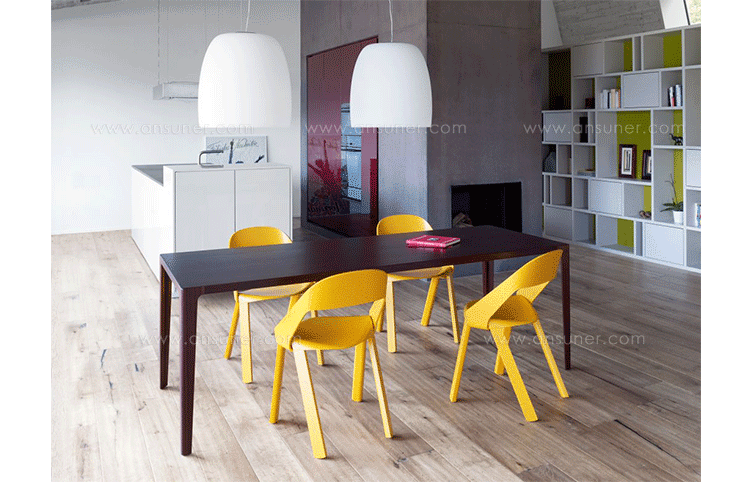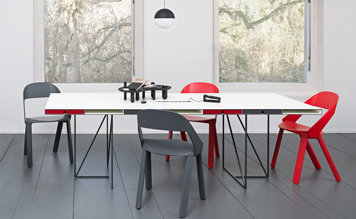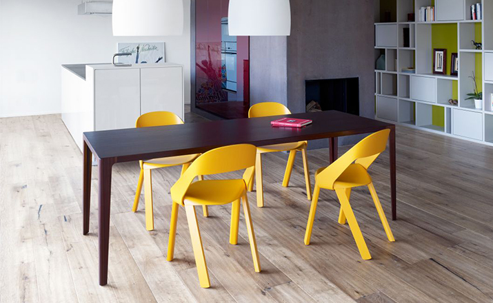 The chair’s design is simple and clear. The seat is bent down on four sides and holds the legs and the back on both outer sides.Molded plywood shapes the aesthetics of the chair.Pressing plywood into shape is an old technique that has seen a rapid development with the introduction of CNC milling technology in recent years.Complex molded parts can be inserted in milling tools and pressed directly with the plywood. This has opened new paths for shape and design.As with the chair Wogg 50,whose structural center is the core pressed in below the seat shell.
