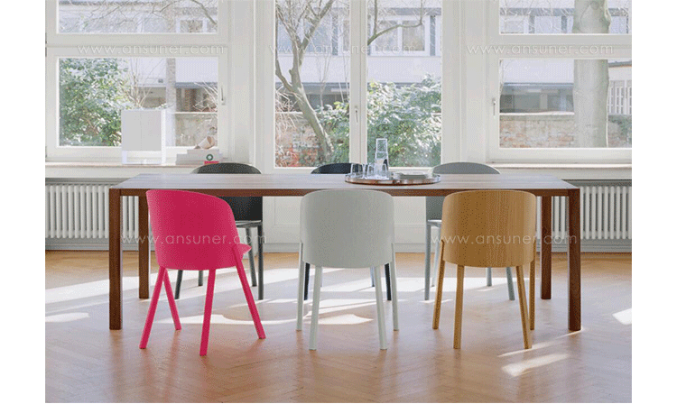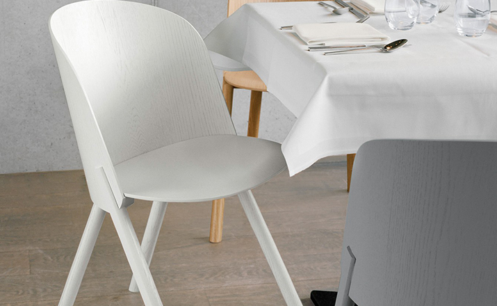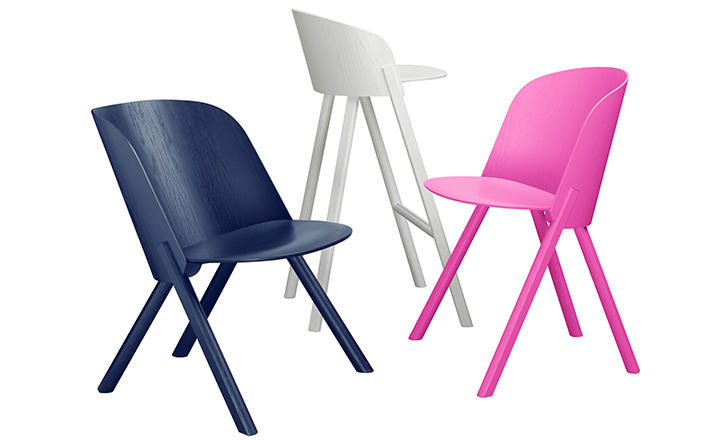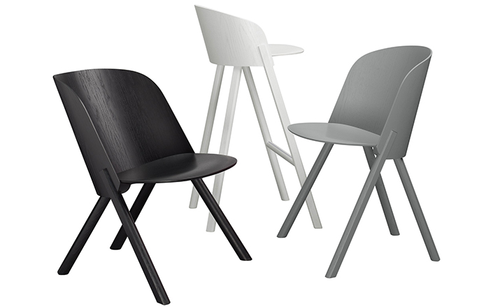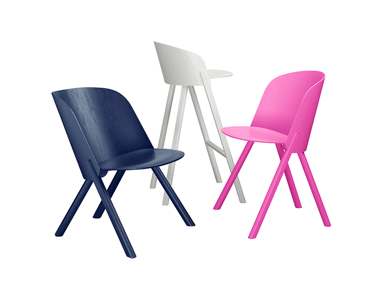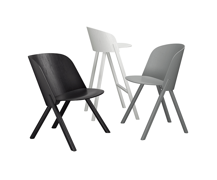 named after the famous card trick,THIS THAT OTHER seating series is made of robust and versatile molded oak-veneered plywood.Rounded shapes give way to modern spirit and rational details in distinct quality.With a streamlined construction,THIS side chair represents a very economical and appealing solution,especially for the contract market.