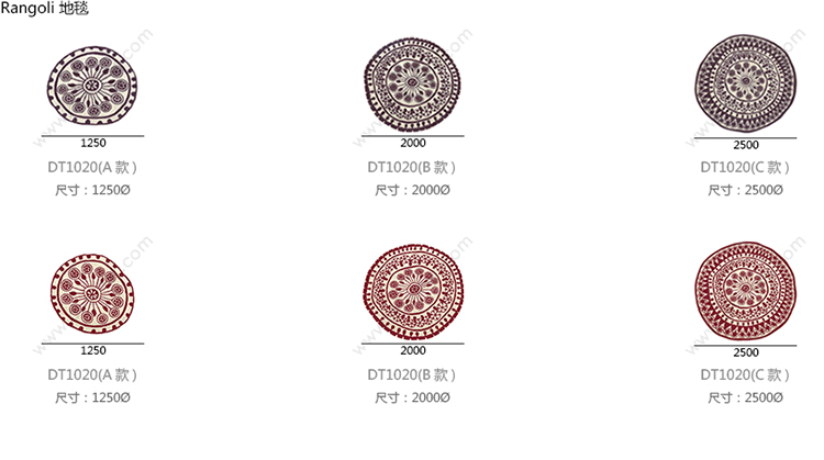 Rangoli 地毯 系列尺寸/示意图