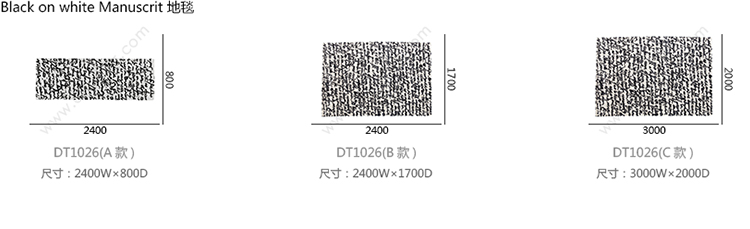Black on white Manuscrit 地毯 系列尺寸/示意图