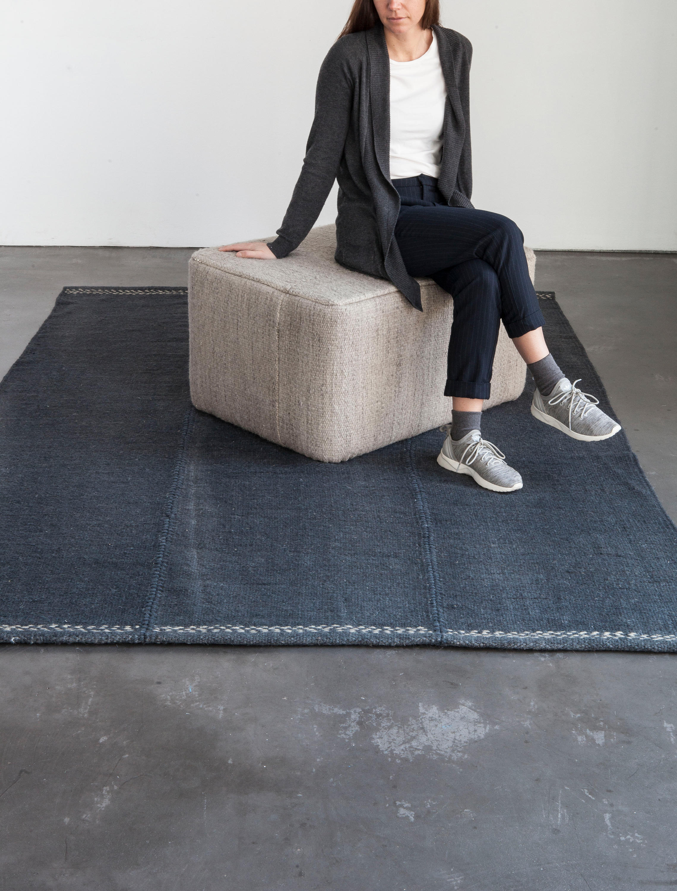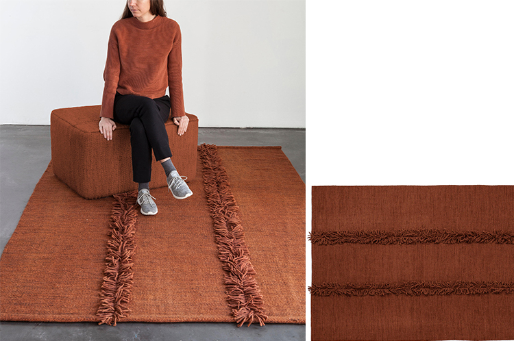 米亚是第一个可以完全定制的系列,在两种尺寸,四种颜色和四种不同的饰面之间做出选择。你可以对比接缝,添加不同类型的条纹,或者选择色彩鲜艳的缝线。无限的结果是可能的;每个细节都有不同,确保你的地毯是独一无二的。